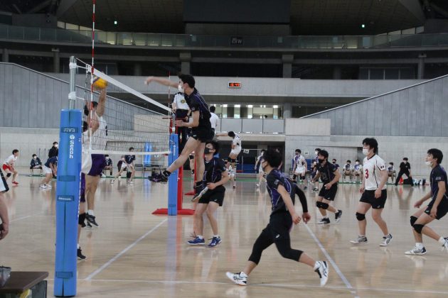 初戦の大森学園戦は2セットとも序盤から勢いに乗って落ち着いて対応し、途中流れが傾きかける場面もあったが、粘りのバレーを展開し勝つことができた。