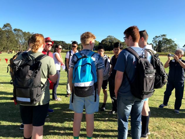 さて、我らが日学生はといえば、・・・。彼らはとくに競技に参加するつもりはないようで、トラックのわきに車座になり、カードゲームをはじめました。にぎやかな雰囲気に少し圧倒されてしまったかな。