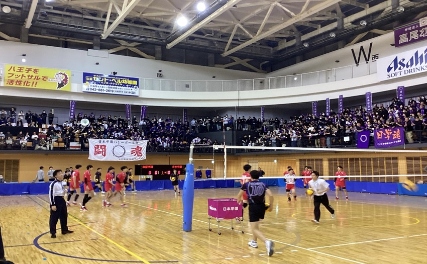 あれから1年。2024年11月24日(日)2度目の東京都代表決定戦に挑むことが出来ました。昨年の経験を活かし、今年は応援の人数を増やし、少しでも選手が戦いやすい雰囲気で試合に挑んで欲しいと思っていました。吹奏楽部の生徒、運動部の生徒など在校生が多く会場に足を運んで応援をしてくれました。また、学校関係者・OB・保護者・OBの保護者までも多くの方々が会場に来てくれました。こんなに多くの応援団の前で大声援の中で生徒がバレーボールをすることはなかなか経験できないことです。